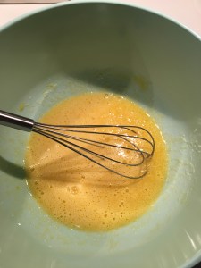 - Ta en annan skål och vispa nu 2 ägg med 1 1/2 dl socker. Vispa och glöm inte att andas lugnt under tiden. Njut av den gula och härliga färgen.