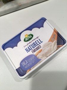 - Sist men inte minst rör du ner 100 gram färskost naturell.
