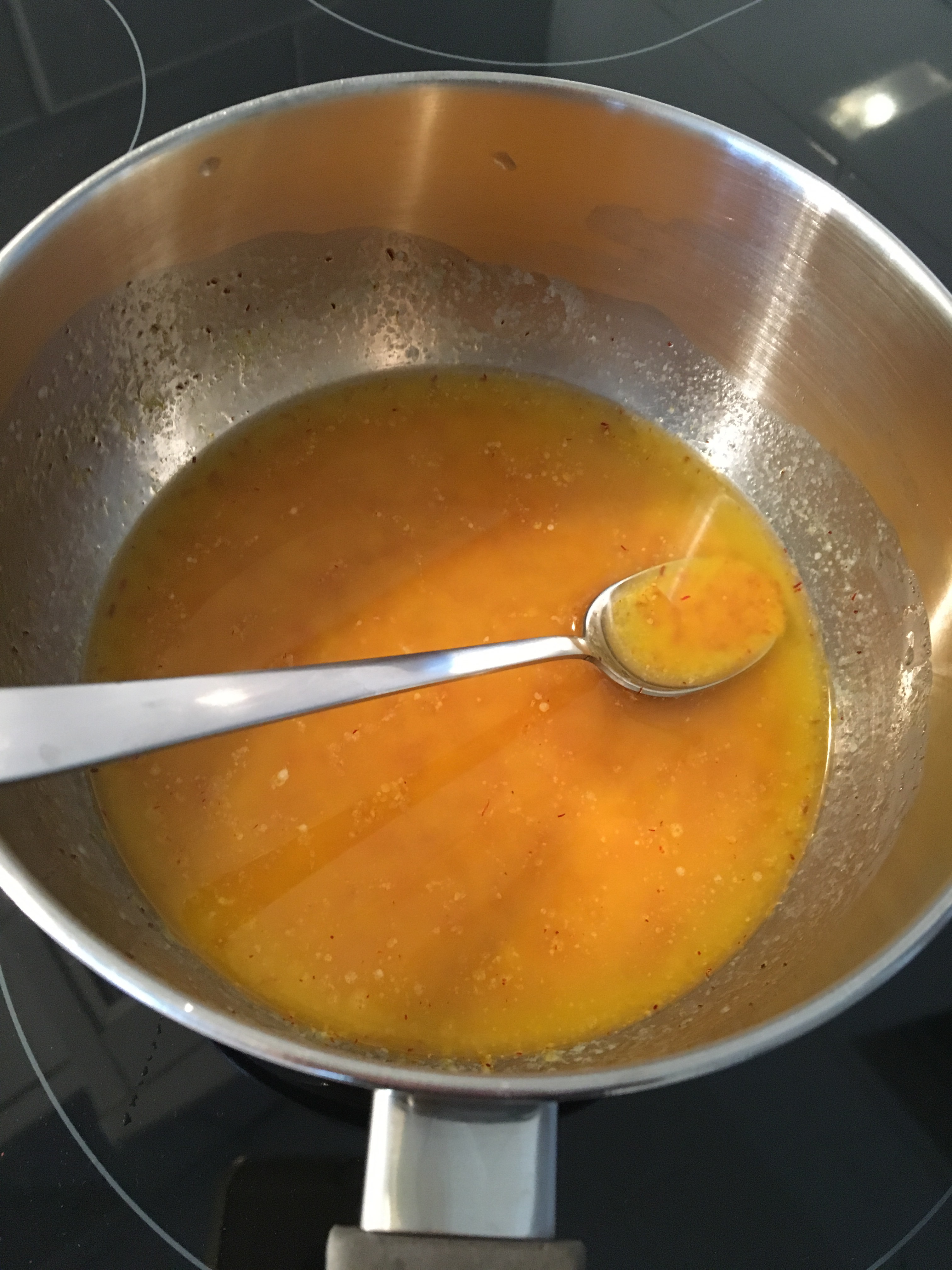- Tillsätt nu smör- och saffransblandningen. Se hur smeten tar form. Andas lugnt!